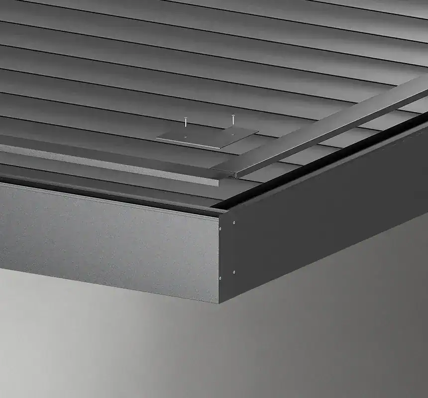 SB400 R to system szczególnie dobrze dopasowany do realizacji, w których dach tarasowy ma zostać zintegrowany z bryłą budynku, opaską betonową lub minimalistyczną strefą tarasową. Niska wysokość konstrukcyjna wynosząca 245 mm + 3 mm zaślepka narożna pozwala estetycznie wpisać system w opaskę betonową, przygotowaną wnękę lub strefę przyścienną. Dzięki temu pergola nie wygląda jak dobudowany element, ale jak spójna część architektury domu.