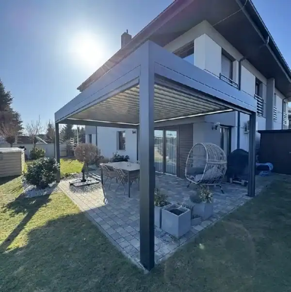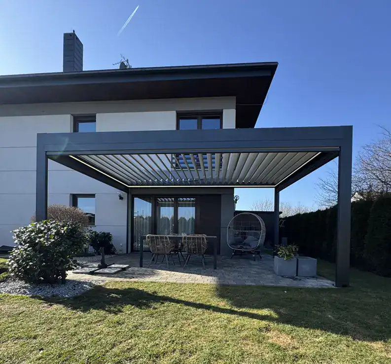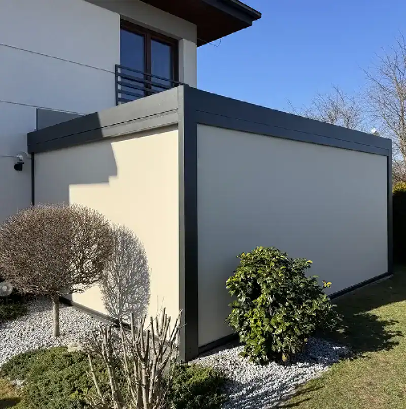 Lamele typu Sunbreaker wykonane zostały z trwałego aluminium. Dostęp światła słonecznego lub deszczu ograniczamy poprzez zmianę kąta nachylenia piór. Obrót lameli uruchamiamy za pomocą zdalnego sterowania. W pozycji zamkniętej pióra tworzą wodoszczelny dach, skutecznie chroniąc taras przed opadami powierzchniowymi deszczu.