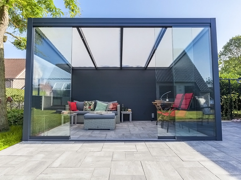 System szklanych drzwi przesuwnych to eleganckie i funkcjonalne rozwiązanie do pergoli, tarasów i innych przestrzeni zadaszonych. Jego główną zaletą jest ochrona przed wiatrem, deszczem i kurzem przy jednoczesnym zachowaniu otwartego widoku.